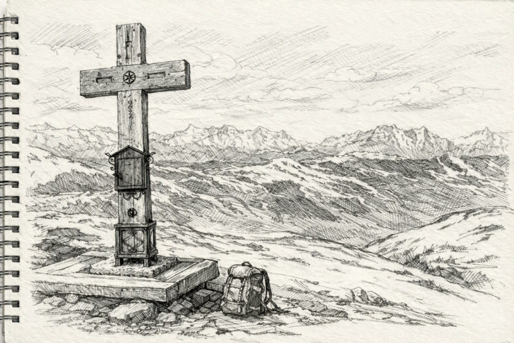 La volonté qui ne demande pas : « Pourquoi ? » mais affirme : « Je suis là. » Comme une croix de montagne, battue par le vent, marquée par les éclairs, tenant non par orgueil, mais par fidélité à sa place.